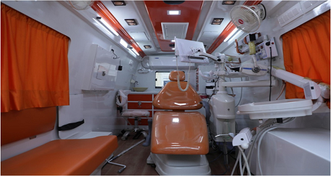 We have acquired a Mobile Oral Cancer & dental screening van, which is completely functionaldental clinic on wheels. It is well equipped withall latest technologies to educat and screen oral cancer patients and treat patients with various dental oral and maxillofacial problems. It has a fully functional dental unit, compressor RVG with x-ray machine intra oral camera for oral cancer screening and external placed television along with audio system for patient education during camps.The goal of this oral cancer & dental screening van is to detect mouth cancer or precancerous lesions that may lead to mouth cancer at an early